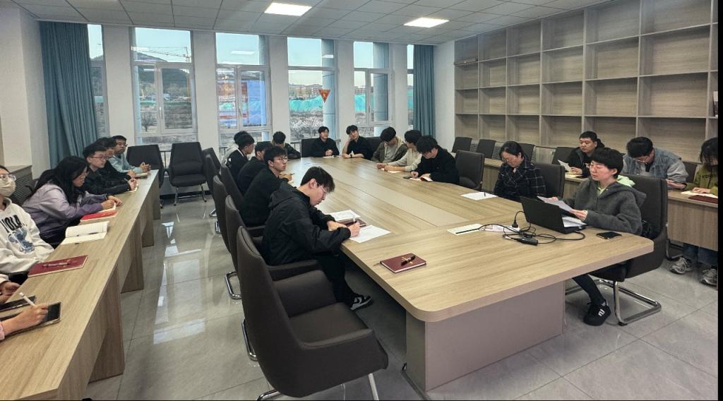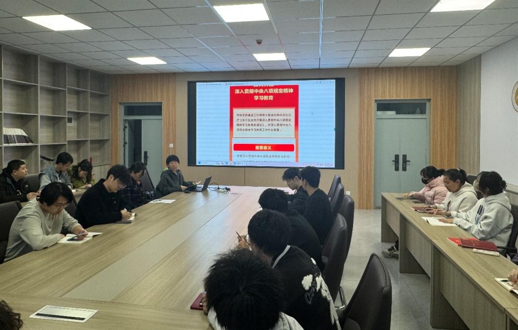 研究生党支部在314会议室召开深入贯彻中央八项规定精神学习教育启动会,会议由支部书记韩文艳主持,支部全体党员参与。