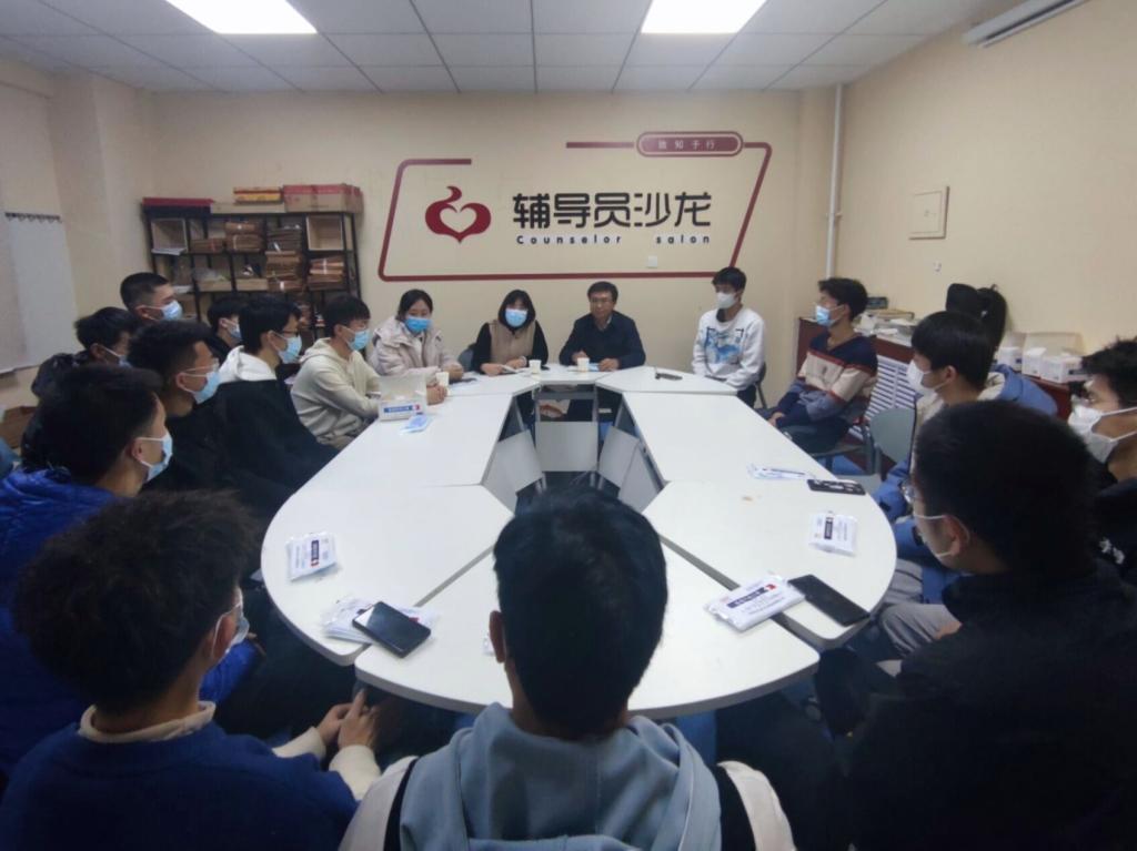 党委副书记史瑞根、学生科科长张丽花在文瀛17楼1006室召开学生干部座谈会。