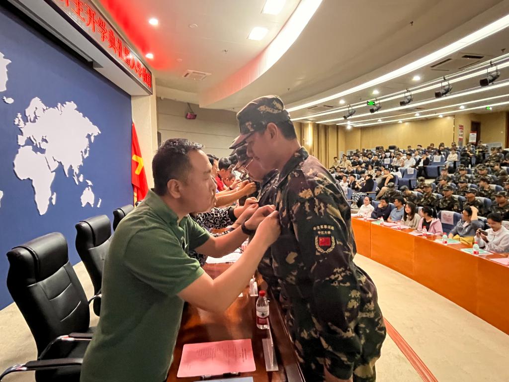 校徽佩戴仪式中,主席台就座人员为新生代表们佩戴校徽,校徽承载着中北人的光荣与使命,“巨乳做爱