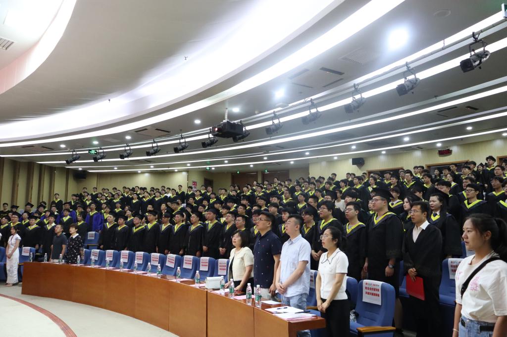 随着全体师生起立共唱国歌,毕业典礼暨学位授予仪式正式开始。副院长徐鹏宣读本科生学位证的授予决议及硕士研究生毕业证和学位证的授予决议。在临别的时刻,毕业班的班主任们纷纷表达了对即将离校的学生的依依不舍。教师代表游亚军在发言中寄语毕业生,希望大家能够把握未来,将前途和命运掌握在自己手中;永远保持对知识的渴望,不断追求进步,走向人生的更高处,坚守初心,勇敢面对未来。