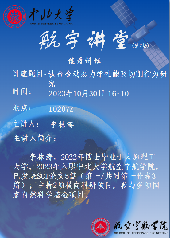 航宇讲堂之俊彦讲坛:钛合金动态力学性能及切削行为研究